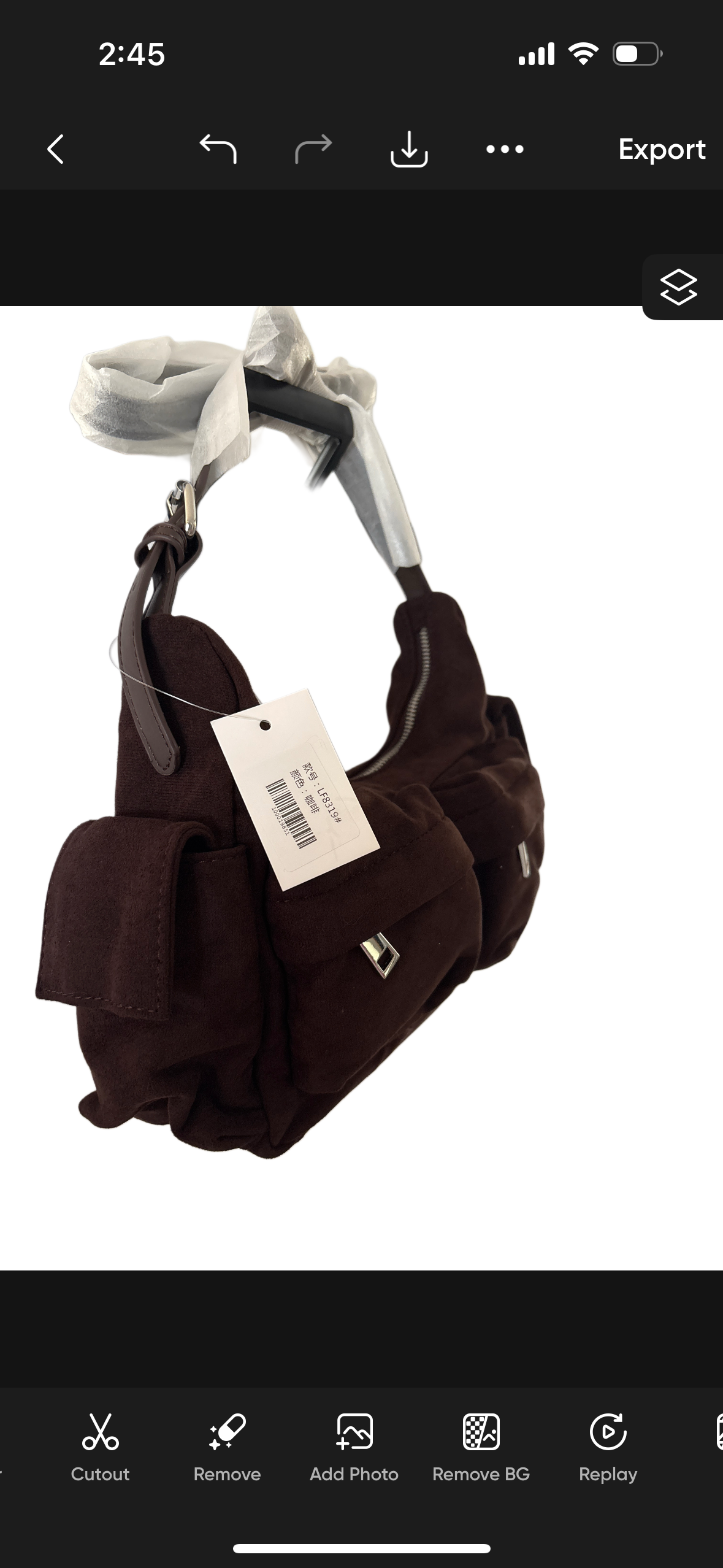 Pocket bag vintage brown velvety fabric long strap could be use as a crossbody . Very trending style